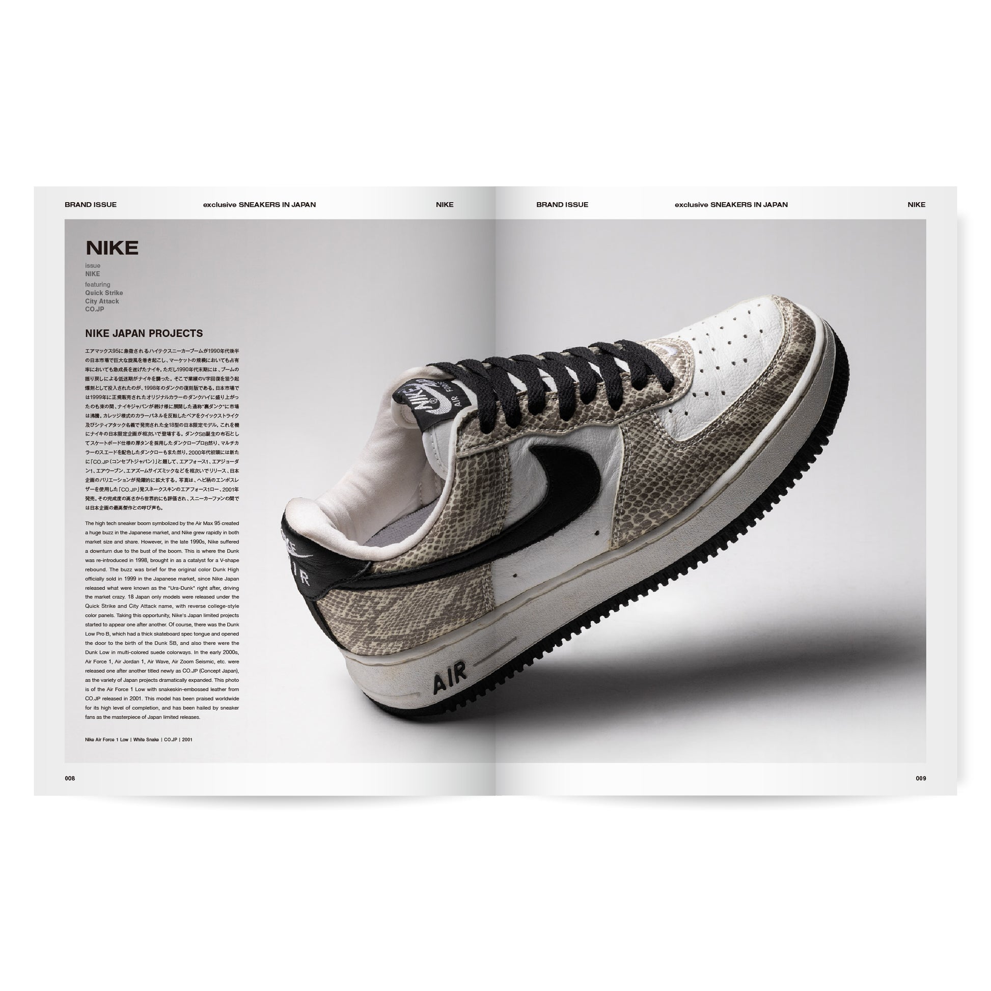 Archiving sneakers related to Japan is the theme for this book; a visual data book consisting of a timeline of sneakers related to Japan organized by year, tracing the history of Japanese sneaker culture listing up models that are related to Japan in some way or another, such as limited editions created for the Japanese market, collaborations by creators and brands from Japan, and made in Japan models manufactured in Japan.